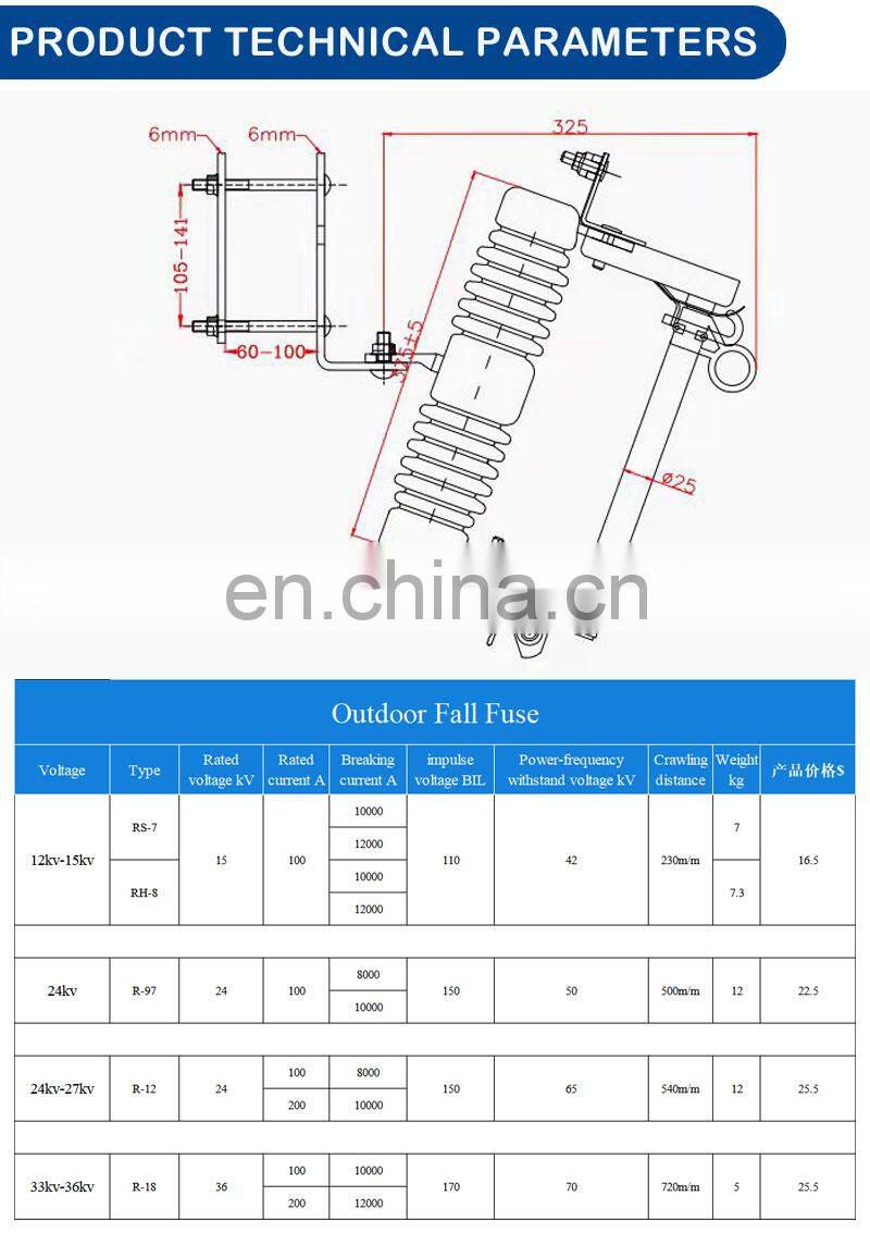 JSDR-1 27kv Drop Out Fuse 24kv 100a With Barrell 100a Switch Load Current Consists of Insulator Support and Fuse Tube
