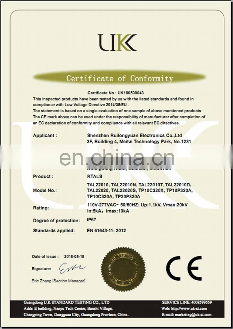 10kA/10kV LED SPD RUILON TAL22010 SPD Devices Used For Street Lamp