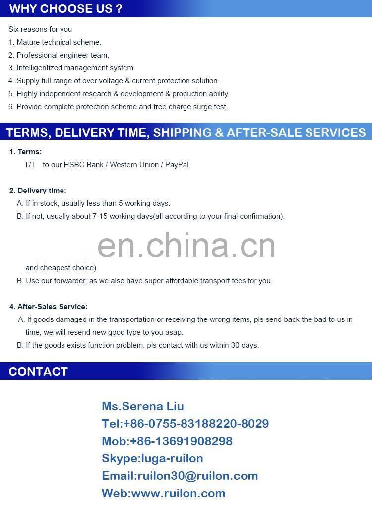 The product size small,81× 37.6× 13.5mm(Does not contain the connection line), using parallel wiring, attached with L, N and PE cable, very convenient in installing. The maximum discharge current is 10kA/line, nominal discharge current is 5kA/line, able to withstand voltage 20kV,especially good from protecting LED Street lights form lightning surge damage.