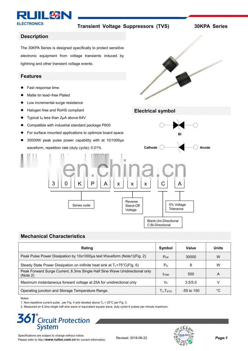 Tvs Diode 30KW Transient Voltage Suppressor 30KPA Series Do-201ae