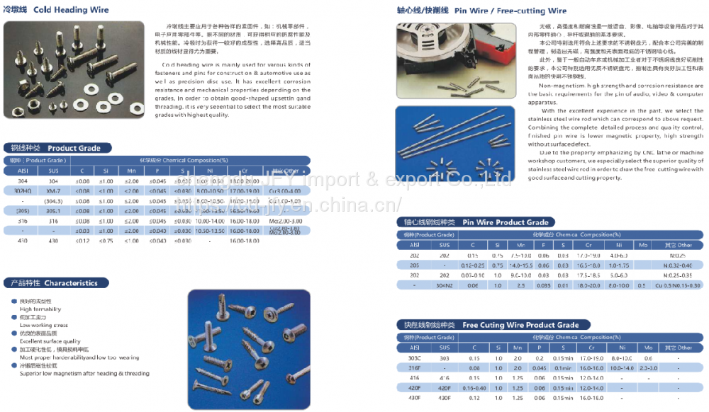 Characteristics: corrosion resistance, lower magnetic property, high strength without surface defect.