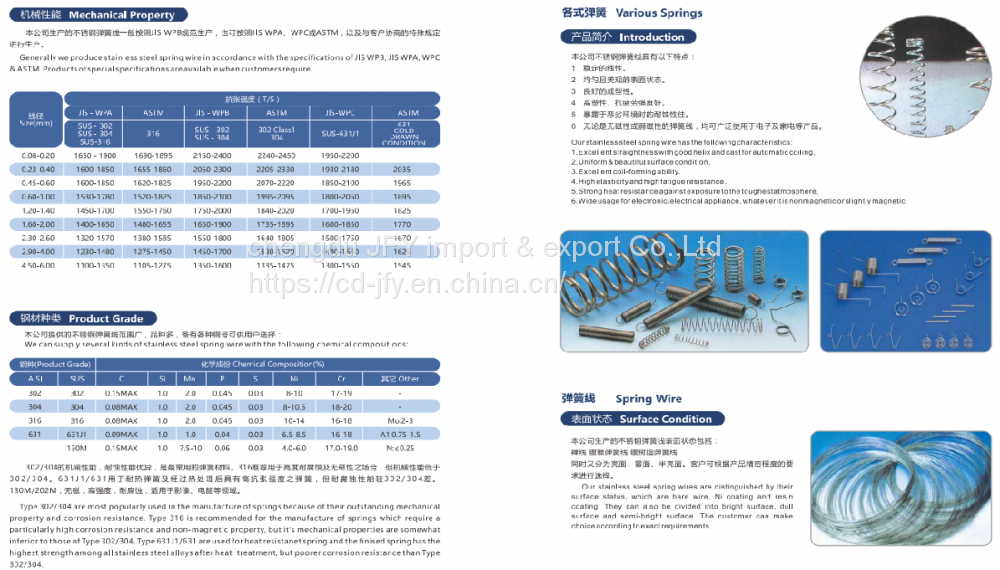 Characteristics: durable corrosion resistance, good stability, excellent coil-forming ability, high elasticity and high fatigue resistance.