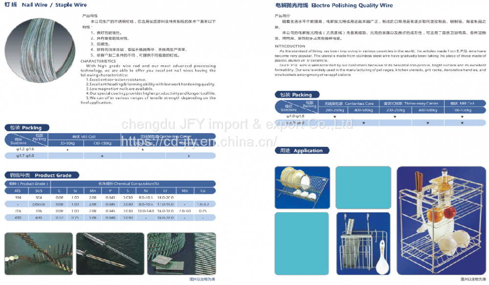 The annual output can reach 25,000 tons of stainless steel wire, 5,000 tons of stainless steel wire rope. The products are widely used in aviation, textile, machinery, automobile, hardware, medical, decoration, leisure and other military, industrial and civil fields.