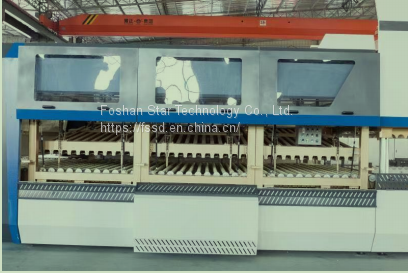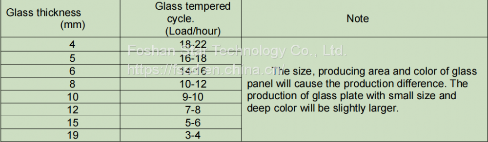 The furnace includes loading table, heating section, quenching and cooling section, unloading table, and control system. It is used to manufacture flat glass for window,door furniture, home appliance, architecture glass, etc.