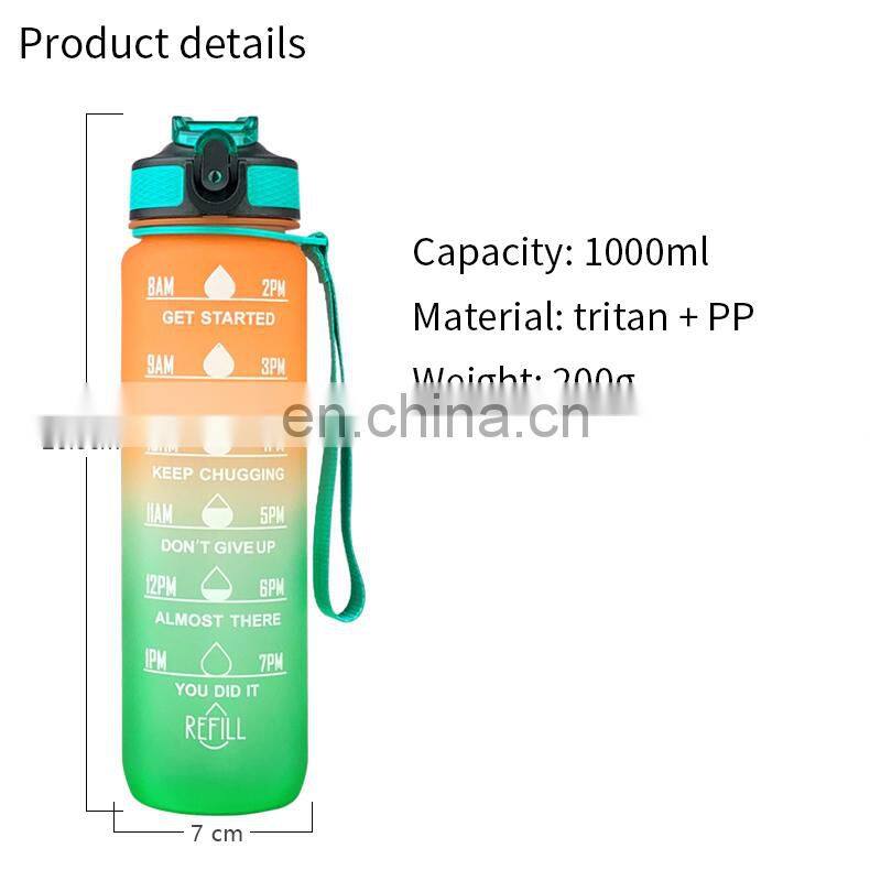 Workout Sport Custom Logo Insulated Straw Strainer Tritan 1L Plastic Motivational Water Bottles With Time Marker