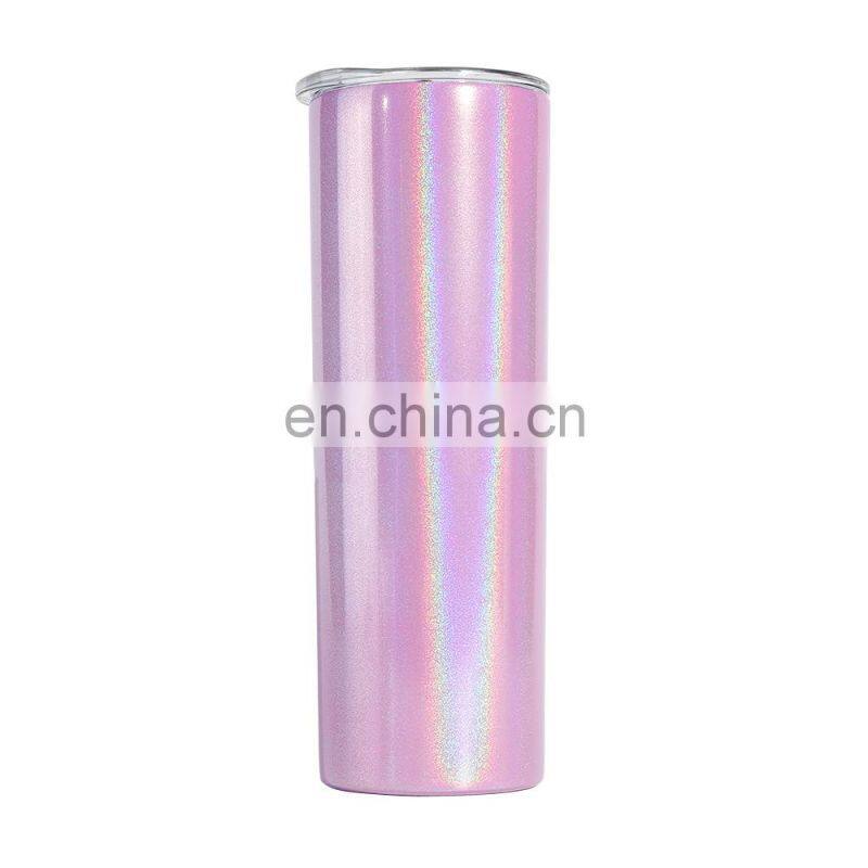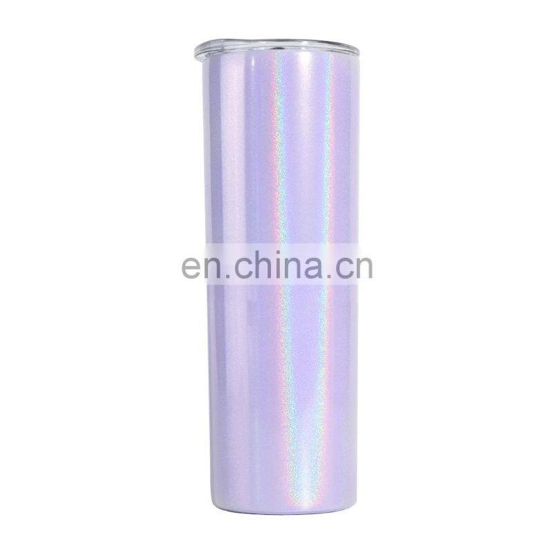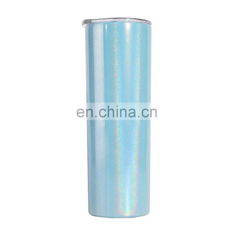 Home > Products > water bottles > Double Wall Skinny Tumblers With Lid And Straw 20Oz Skinny Sublimation Stainless Steel Glitter Tumbler Cup