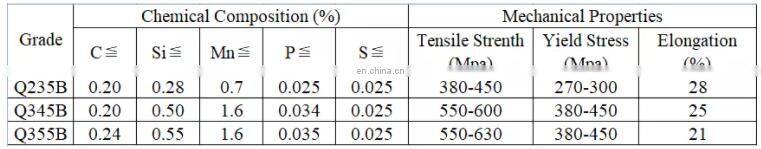 Material | SS400, Q 235B,S235JR,Q345B, S355JR |