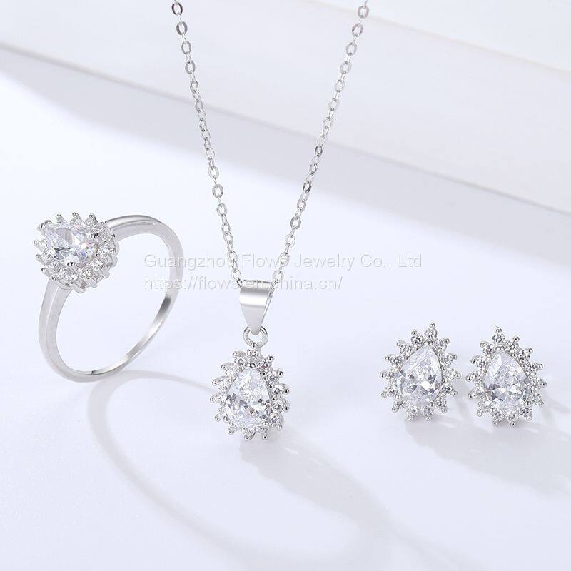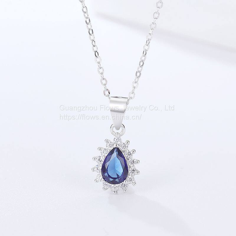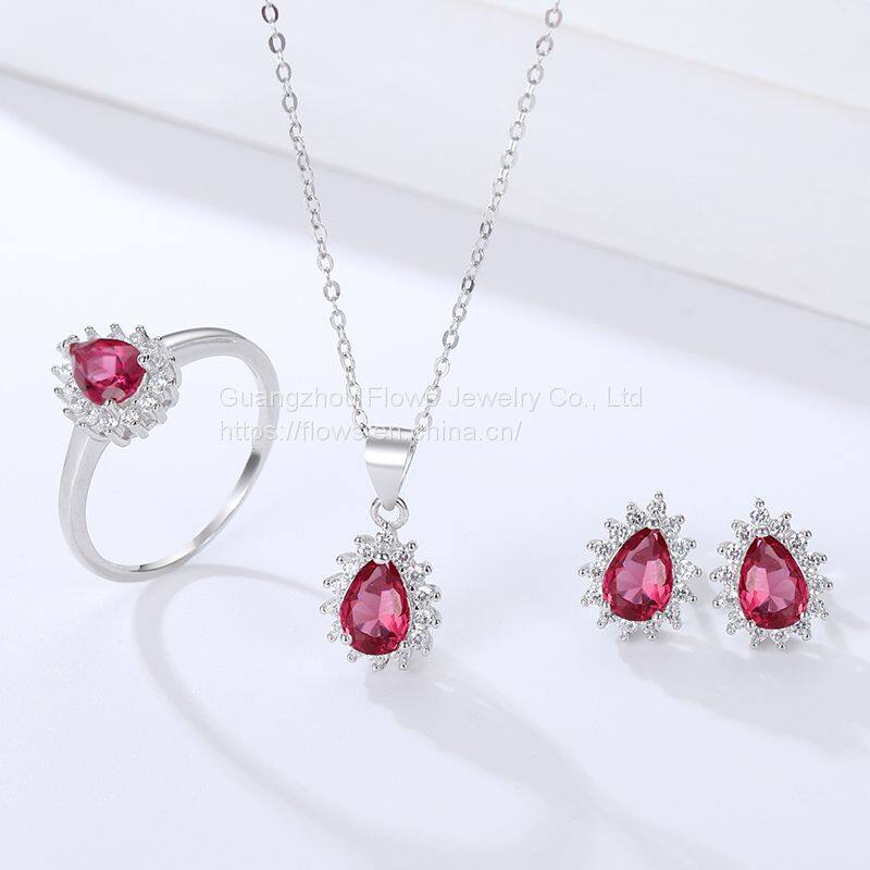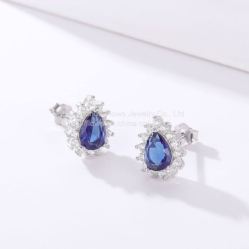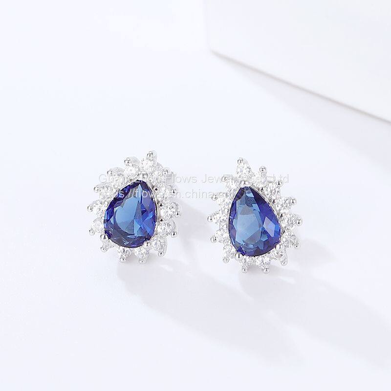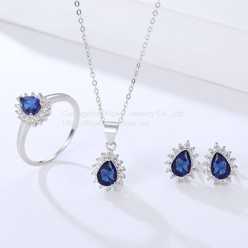 The Platinum Gold Plated 925 Sterling Silver Jewelry Set Rings Inlay Water Drop Sapphire