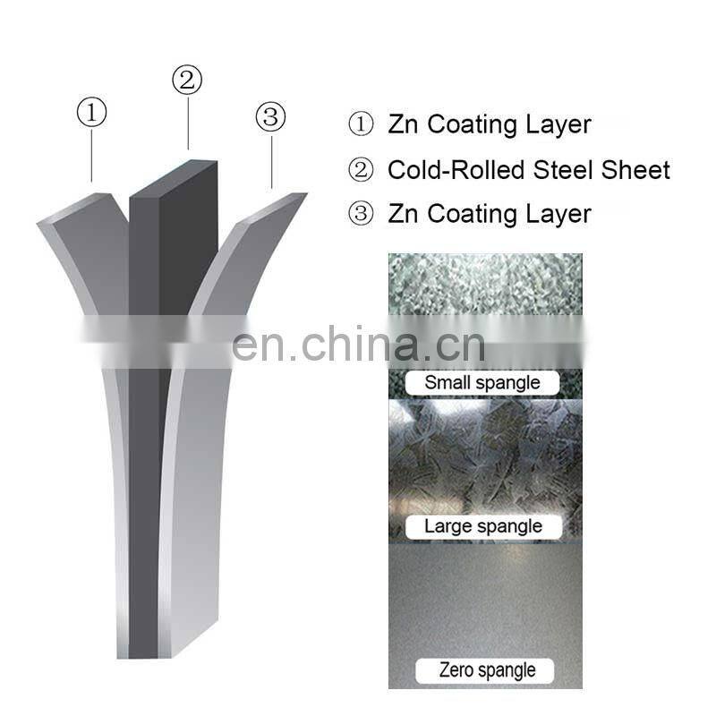 With the cold rolled steel of different strength and thickness as substrate, it isproduced through applying the zinc coat on both faces by hot dip process.