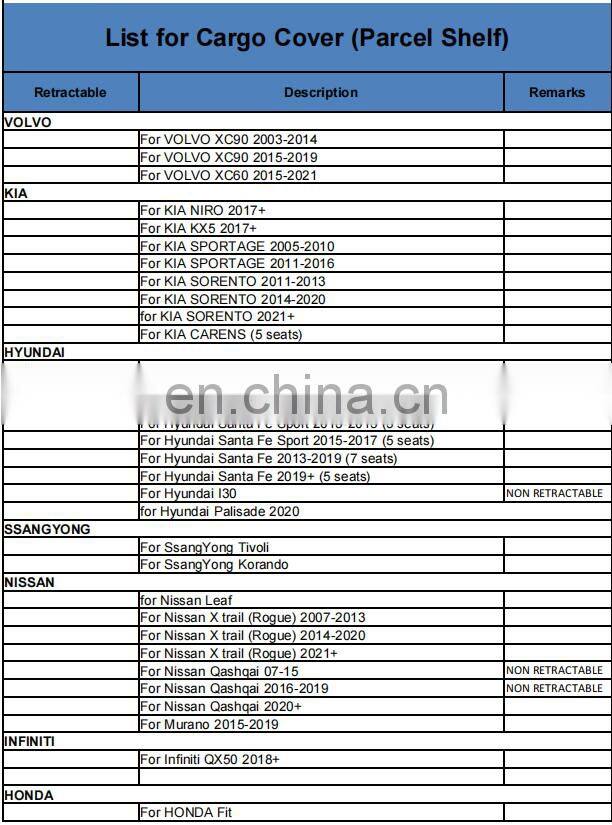 Design Perfect Fitment to Original Car Wholesale Parcel Shelf Retractable Cargo Cover Suitable for KIA CARENS(5 SEATS)