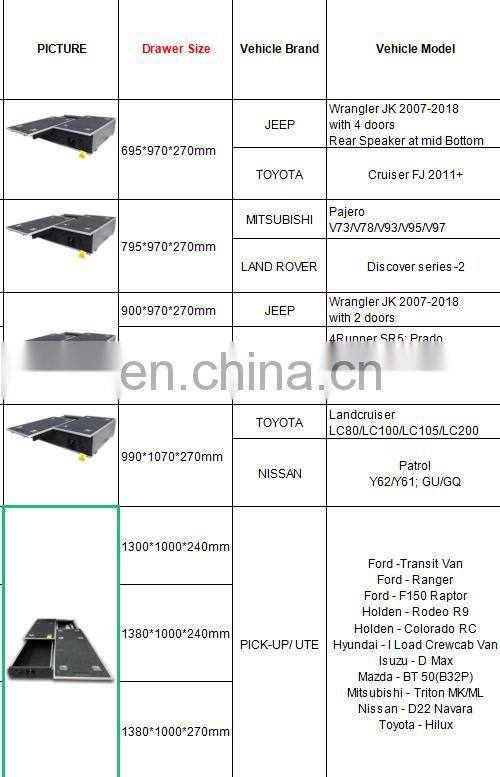 item | car accessories for SUV drawer car 4x4 high quality vehicle drawer system car fit for all car series high quality |
