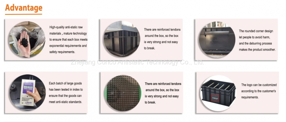 600 x 400 x 230 mm Conductive Black Esd Plastic pp Box Bins