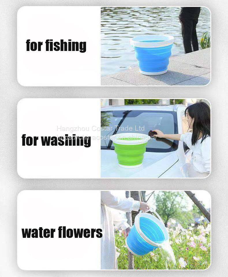 Folding Collapsible Bucket With Strong, Flexible, Compact, BPA Free Design and Sturdy Handle for Hiking Camping and Outdoor