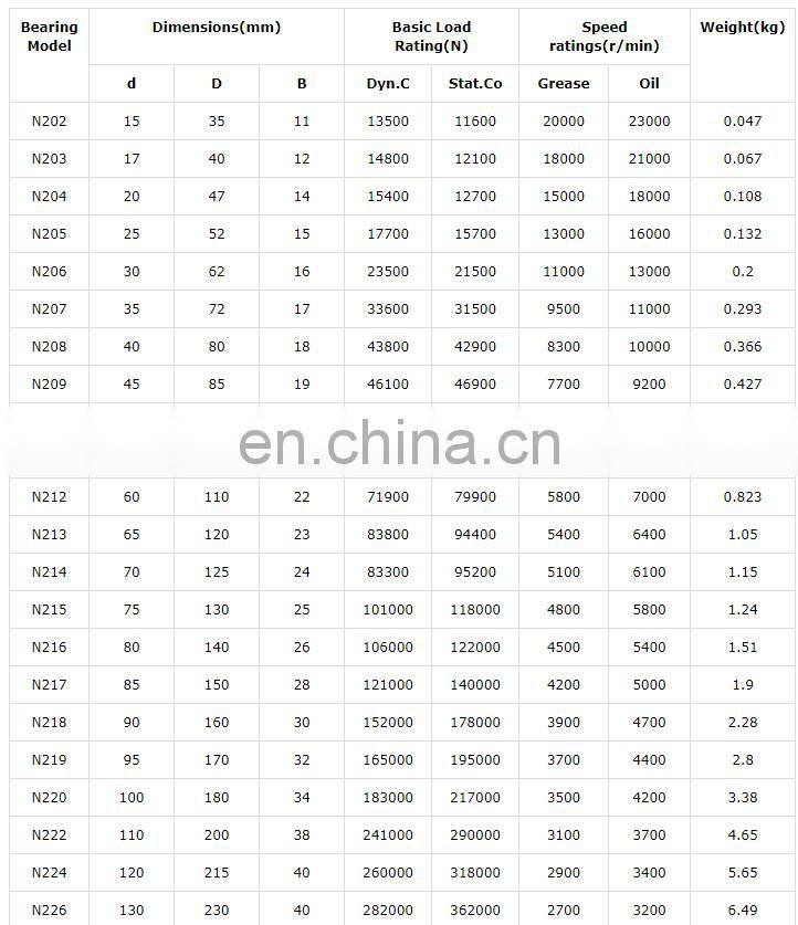 Product name | High Precision size 25*62*17mm cylindrical roller bearing Series N305 N306 N307 N308 N309 N310 |
