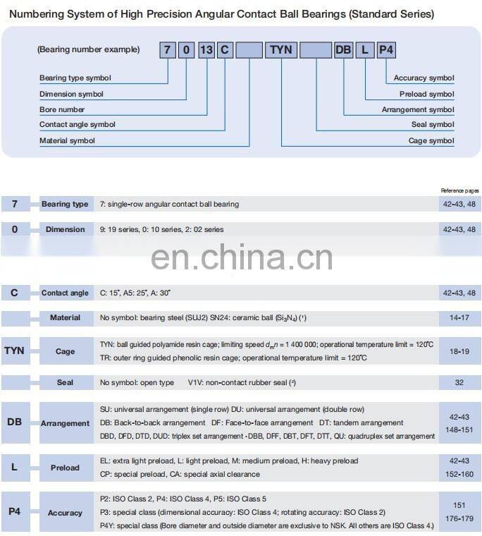 NSK precision bearing 7005CTYNSULP4 7005CTYNDBLP5 7005CTYNDULP4 series numbering system