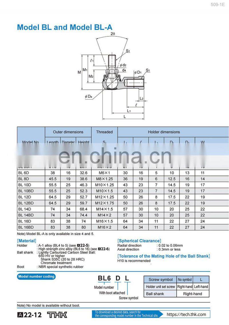 THK rod end spherical joint Universal joint ball head BL10 BL12 BL14 BL16D BD L Left thread