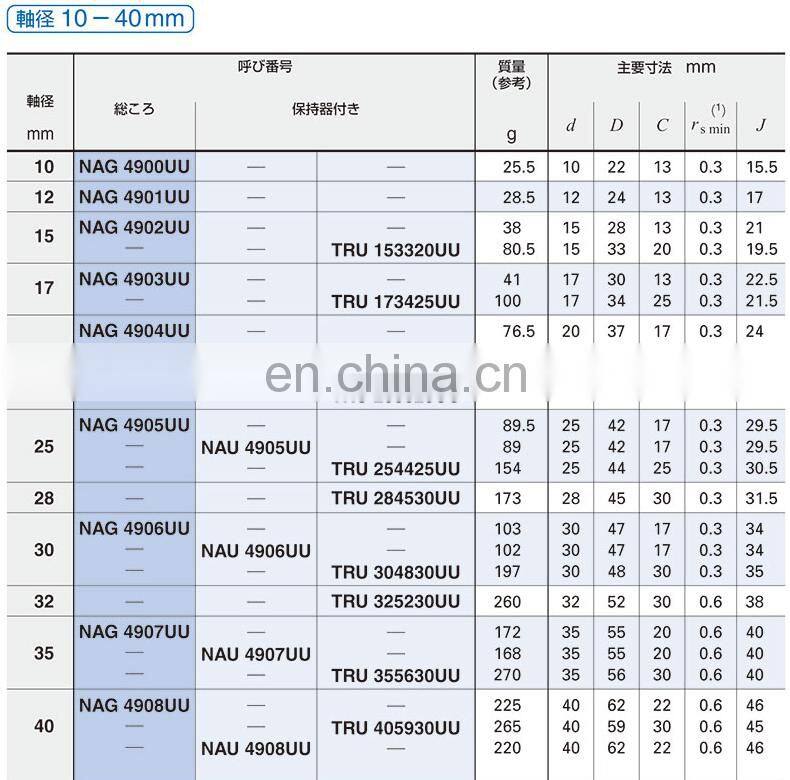IKO NAG 4905 Needle Roller Bearing NAG 4905UU NAG4905UU Bearing in Stock