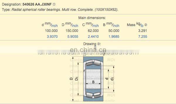 540626 ; 540626AA ; 540626AA.J30CNFTypeConcrete Mixer Bearing ;Spherical Roller Bearing
