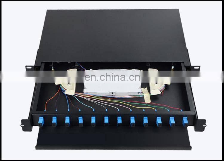 Optical Cable SC12 Core Terminal Box 1U 19'' Sliding Type Fiber Optic 12 Port Complete Optical Drawer Panel
