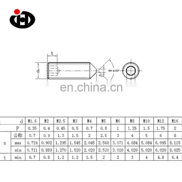 High Quality Stainless Steel GB78 Hex Socket Cone Point Screw