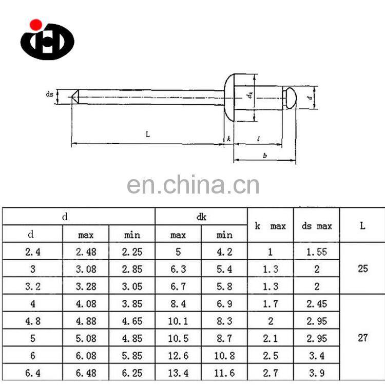 High Quality DIN15977 Open End Blind Rivet Cheese Head 304/45#