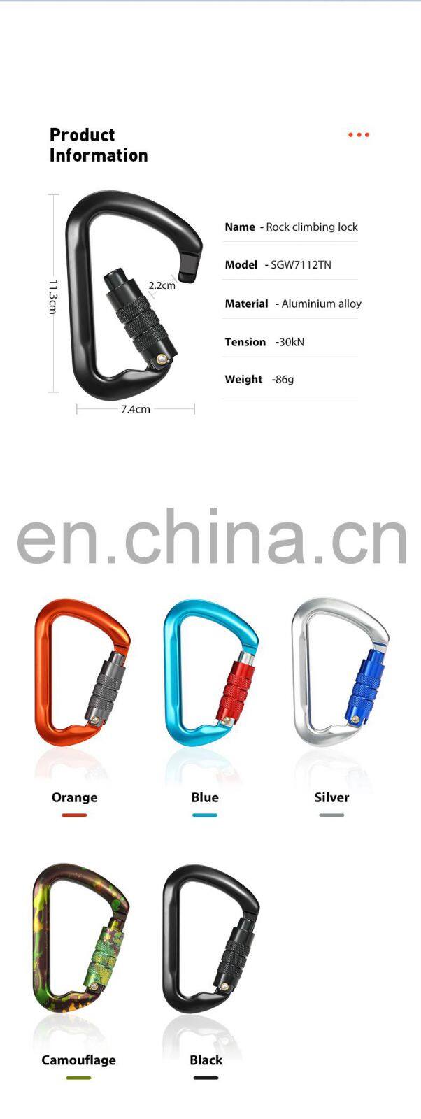 Customized Locking Carabiner clips for Climbing and Hammock Aluminium Safety Hook 30kn S7112