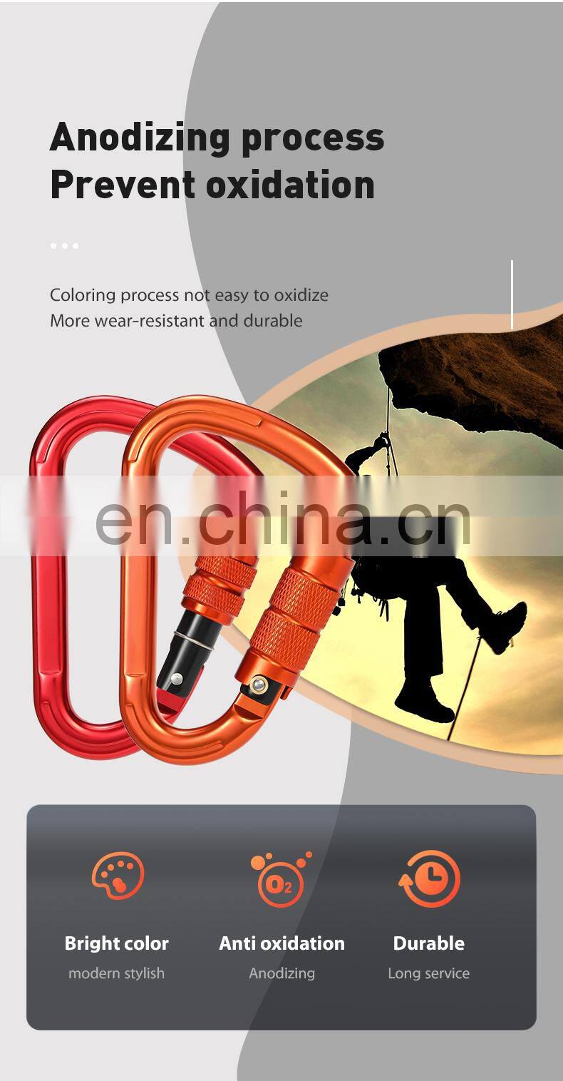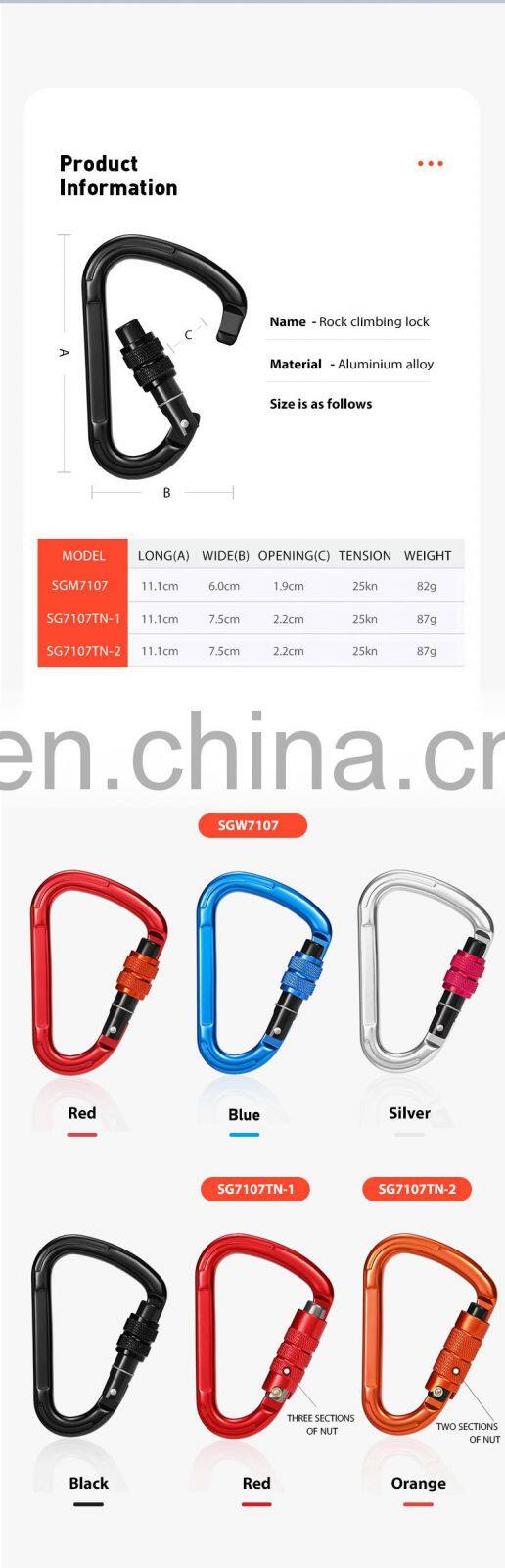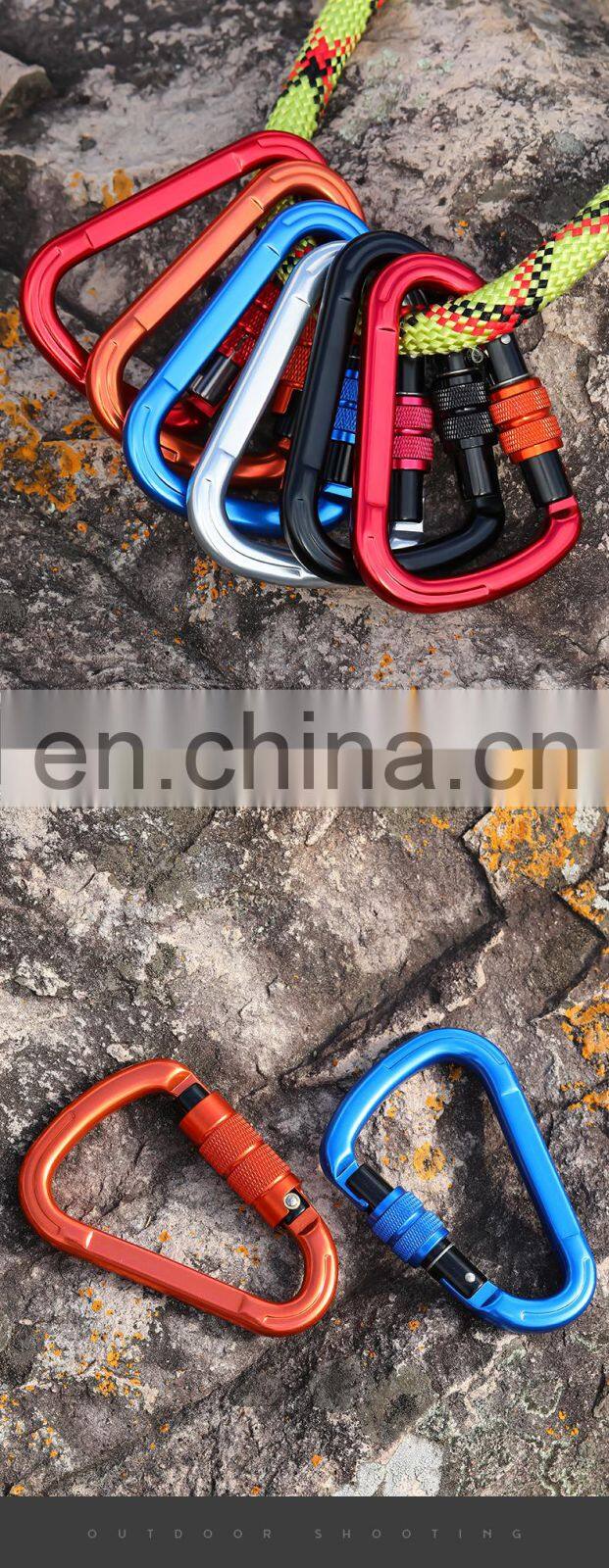 Customized Locking Carabiner clips for Climbing and Hammock Aluminium Safety Hook 25kn S7107