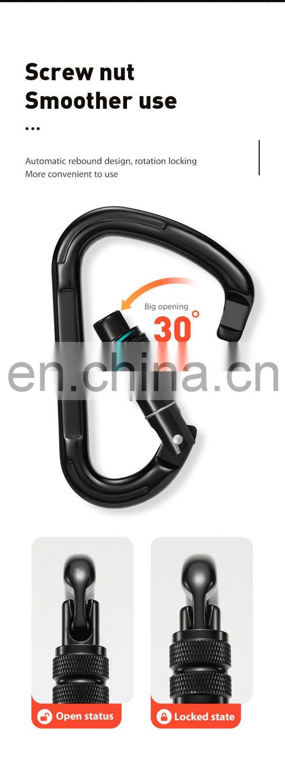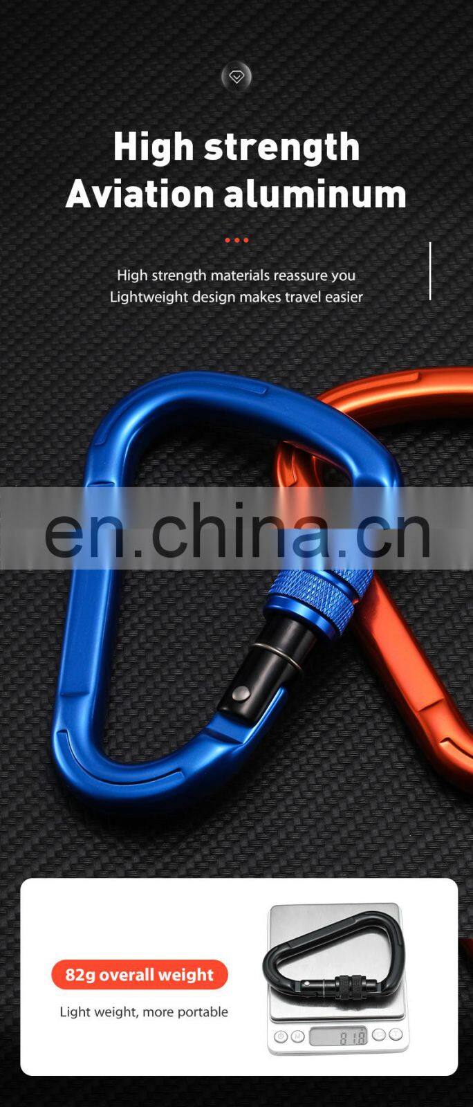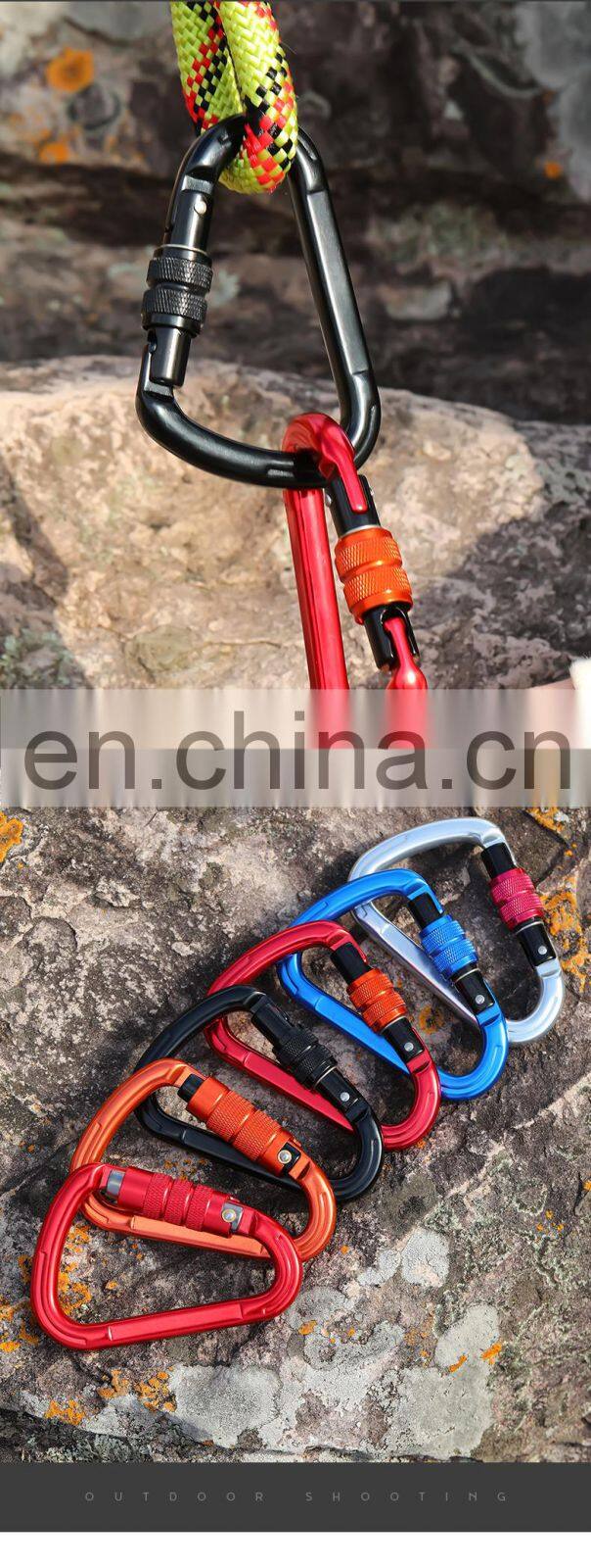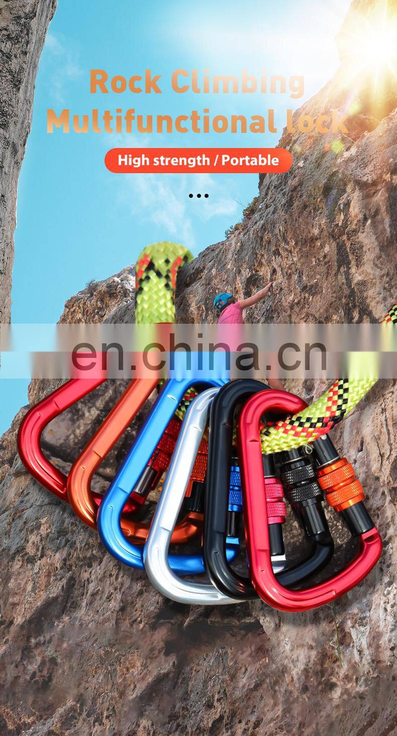 Customized Locking Carabiner clips for Climbing and Hammock Aluminium Safety Hook 25kn S7107