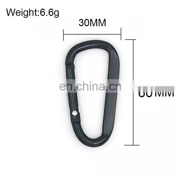 Home > Products > Snap Hook > Factory Wholesale Custom Laser Engraved Logo D Shape Snap Tactical Hook Carabiner Black Clip Aluminium Carabiner Hooks