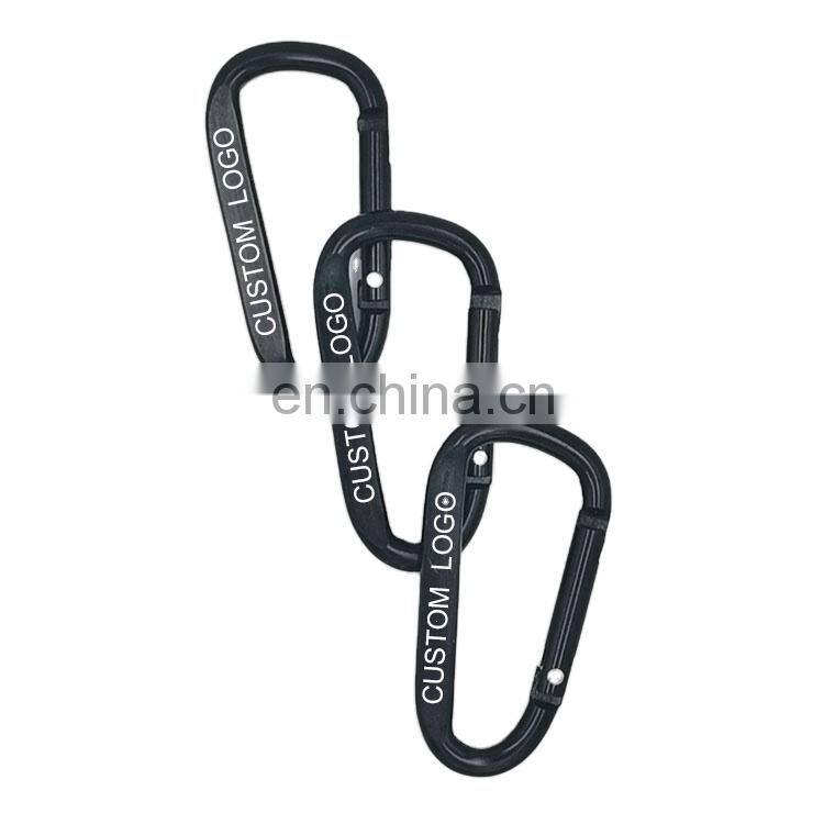 Wholesale Custom Laser Engraved Logo D Shape Snap Tactical Hook Carabiner Black Clip Aluminium Carabiner Hooks