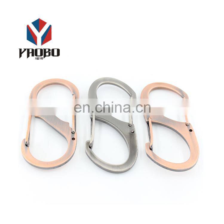 Home > Products > Hooks > Bag Locking Swivel Climbing Snap Hook Carabiner Clips Custom Logo Shaped Keychain Stainless Steel Metal Carabiner With Eyelet
