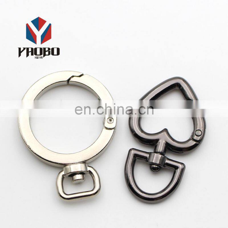 New Design Key Split Ring Stainless Steel Accessories Heart Snap Hook Metal Color Split Key Ring