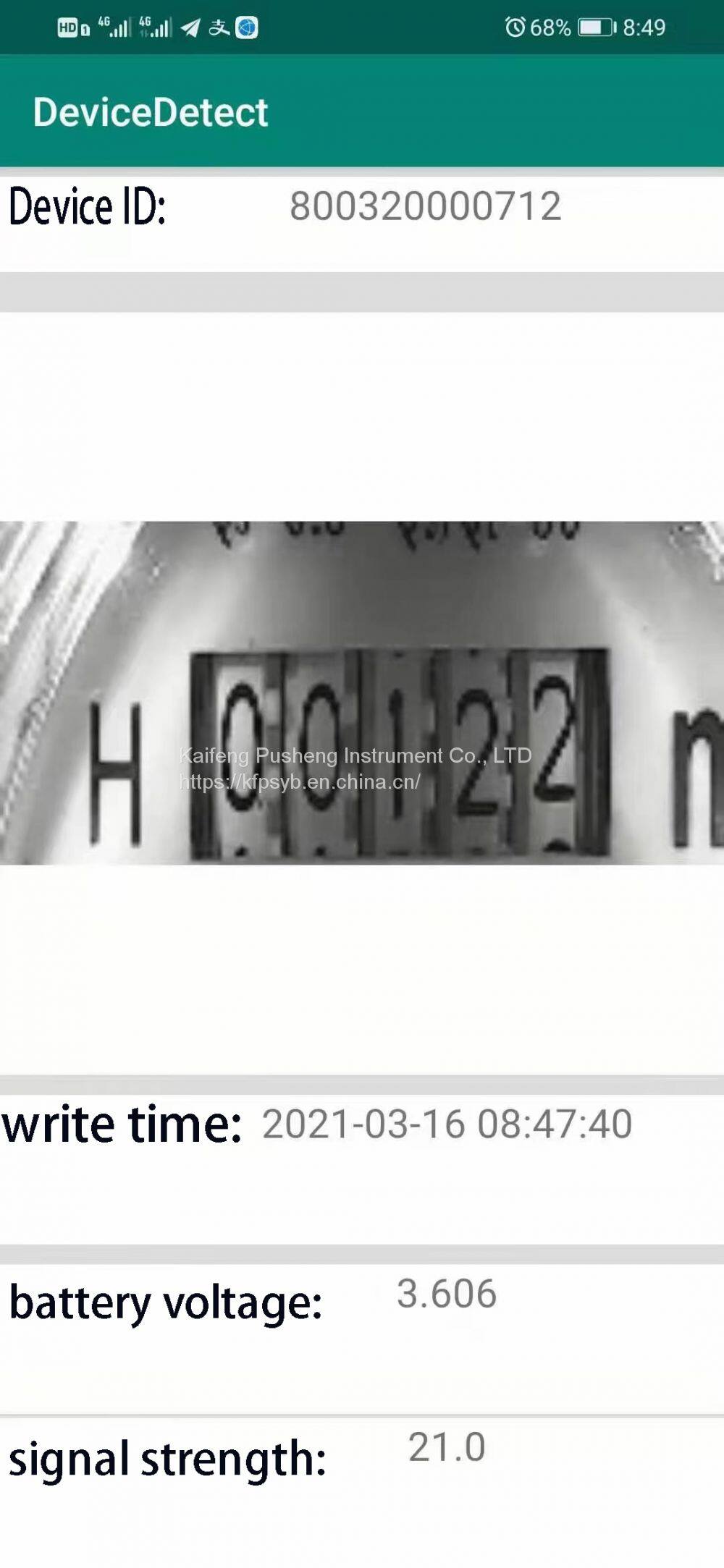 Install a water meter on the camera terminal and plug in the battery. The red power indicator of the camera terminal is on. Wait for about 10 seconds for the camera to light up once for the camera to take pictures. The green communication light is on. Wait for more than ten seconds and the green indicator starts to blink. At this time, the camera terminal sends a picture to the server. After sending the picture, all indicators turn off. After receiving the data, the server will process the picture and have computer client software or wechat public number to view the data.
