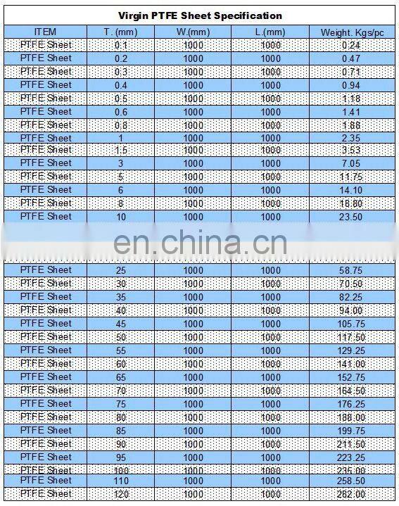 PTFE Sheet, Plastic Sheet, Virgin PTFE Sheet Specification