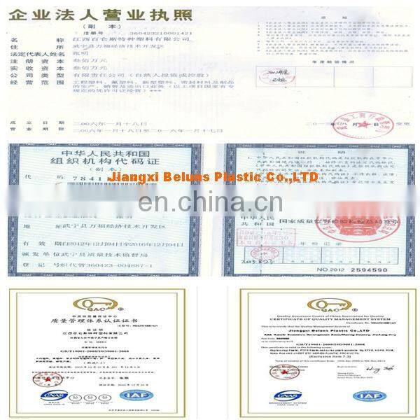 Jiangxi Beluns Plastic Co.,LTD is a professional manufacture PTFE, POM, HDPE, NYLON Sheet, Rod and Gasket, Tubing etc series plastic products' supplier and export to countryies around the world several years. Have hundreds of business units, research in stitutes, laboratories and equipment to provide professional quality service, user base in cludes iron and the medical industry, food industry, steel metallurgy, nonferrous metals, aerospace, rail transportation, hardware, automotive electronics, home application and other filelds. after years of development, the company has created a wealth of experience in sales and after-sale service team. manufacturers and users in the formation of a very high reputation. More details pls check ours web: ; welcome to enquiry of ours products. |