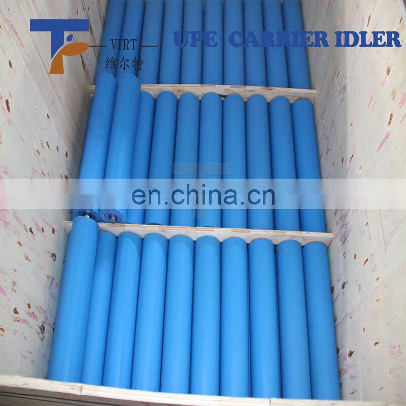 Home > Products > UHMWPE Conveyor Roller > 5 Inch Dia Dust Proof Cylinder Troughing Belt Conveyor Idler for Cement Conveyors VIRT448