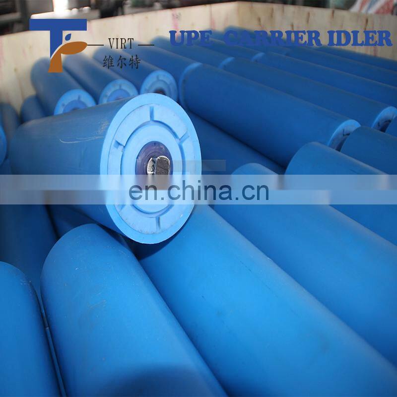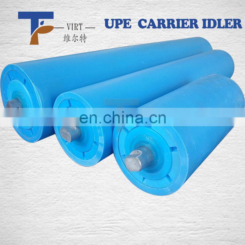 VIRT PLASTIC Ultra-high molecular weight polyethylene (UHMWPE) belt conveyor roller is a high-tech product, which consists of uhmwpe pipe,metal bearing, metal shaft , plastic bearing housing , sealing ring and so on . Compared with metal roller , uhmwpe plastic roller has many obvious advantages in performance.