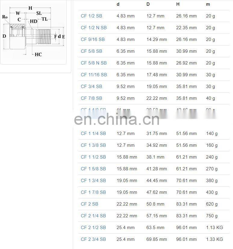 Fast delivery bolt stud type CF 1/2N SB inch size cam follower needle roller bearing
