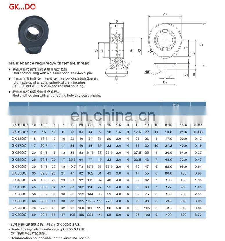 China Made Good Quality With Best Price GK40DO Hydraulic Rod End for Hydraulic Components