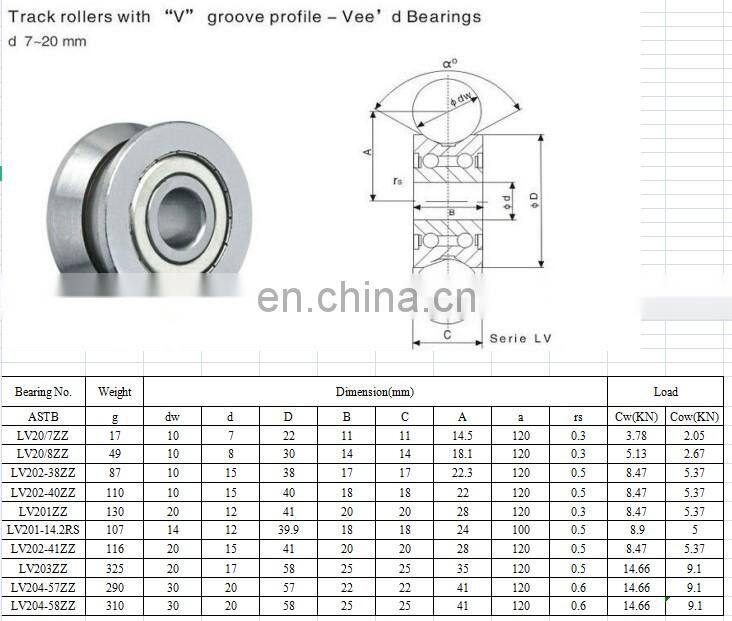 Home > Products > bearing > Fast Delivery LV204-57 ZZ 20*57*22mm Double Row Durable V Groove Track Roller Bearings
