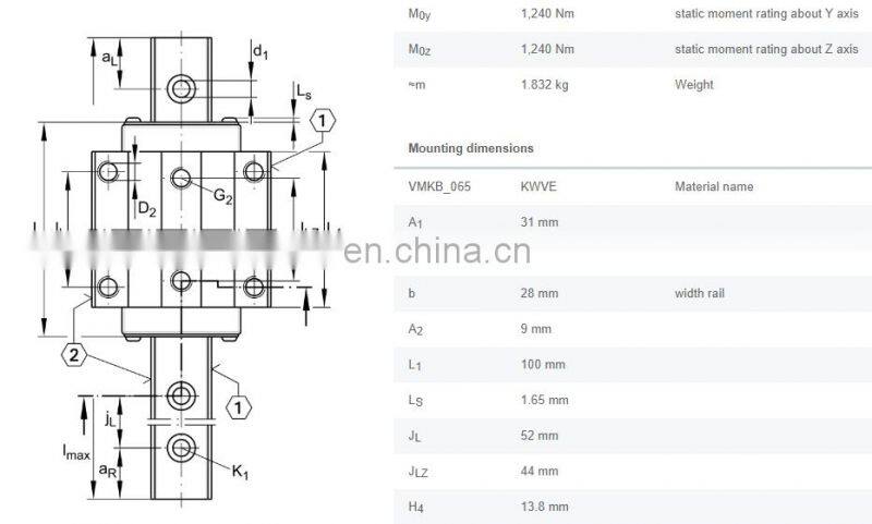 KWVE20B Recirculating Ball Bearing Carriage Four-row Linear Recirculating Ball Bearing KWVE20-B-EC
