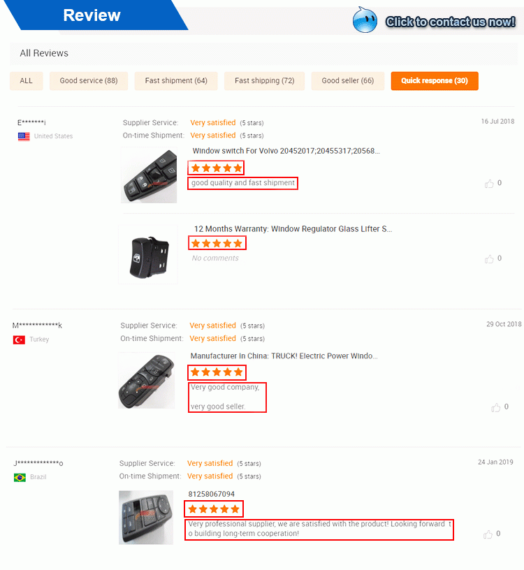 A: Auto parts show around the world, and also we warmly welcome your visit to our company.