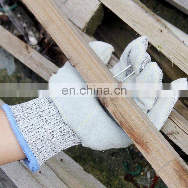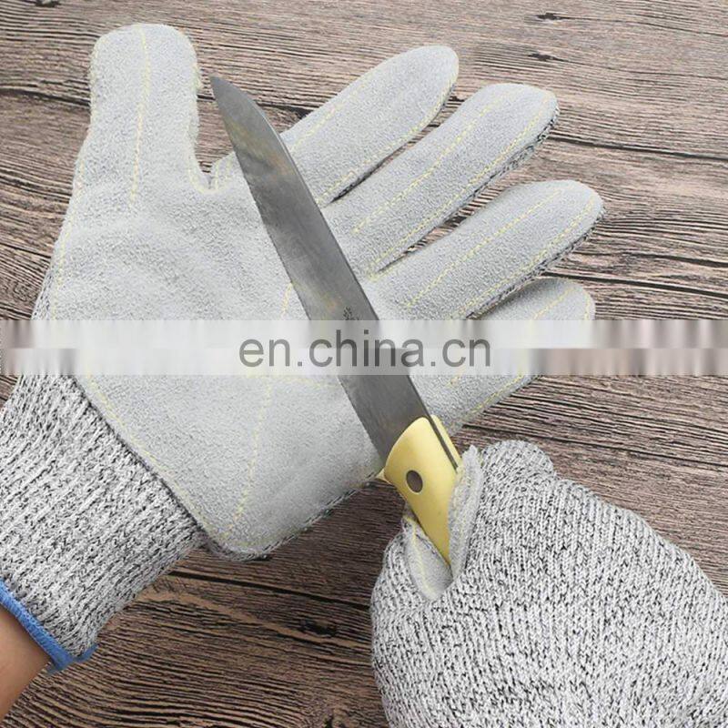 Cowhide Leather Palm Anti Cut Anti Slip Reinforced Palm HPPE Cut Resistant Level 5 Glass Carving Gloves