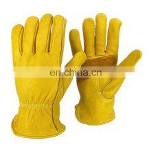 Golden Unlined Safety Cow Grain Leather Work Gloves Men, Driving Gloves