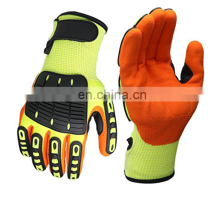 Cut Level 5 Anti Impact Oil Gas Safety TPR Protector Impact Gloves Mechanic Work Gloves With Reinforced Saddle SBR Padding
