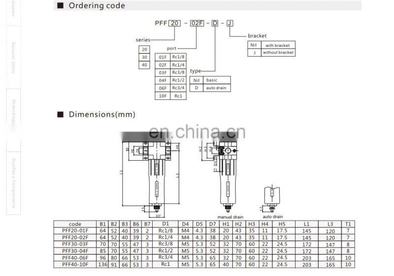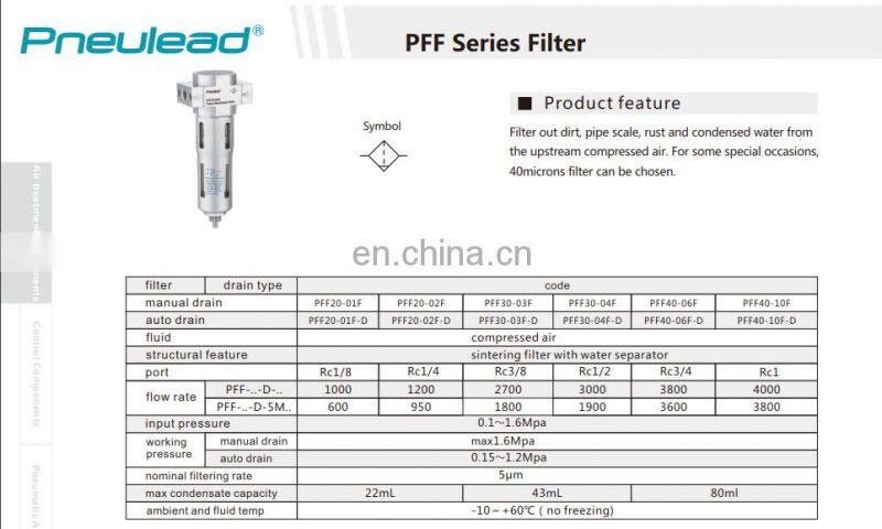 Pneulead PFF Series Air Filter FRL Pneumatic Filter Air Source Treatment Unit
