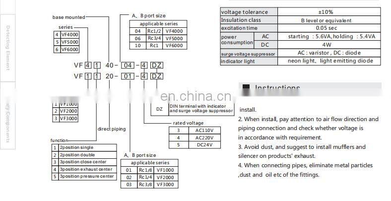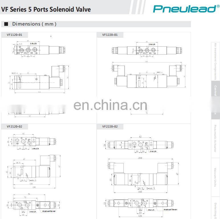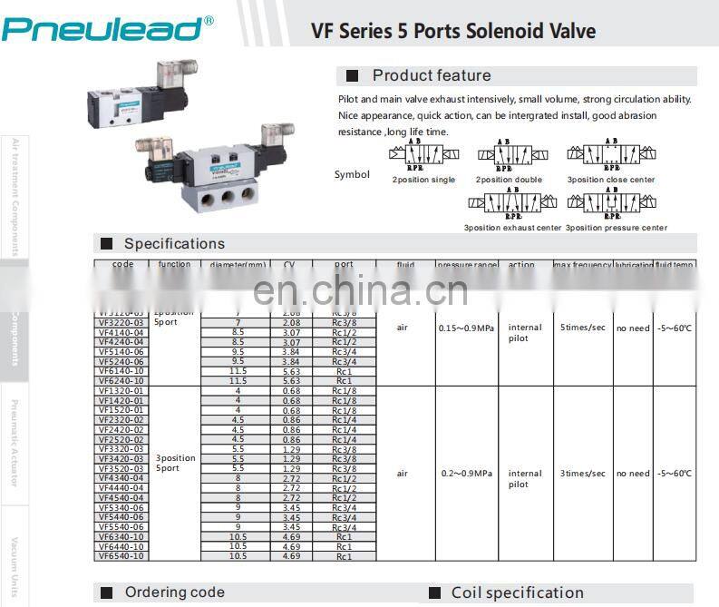 VF Series 2 Position 5 Ports Solenoid Valve Pneumatic Valve