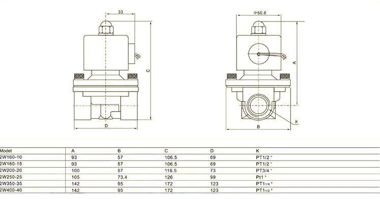 Mode of action: Direct acting 2w160-15 water solenoid valve