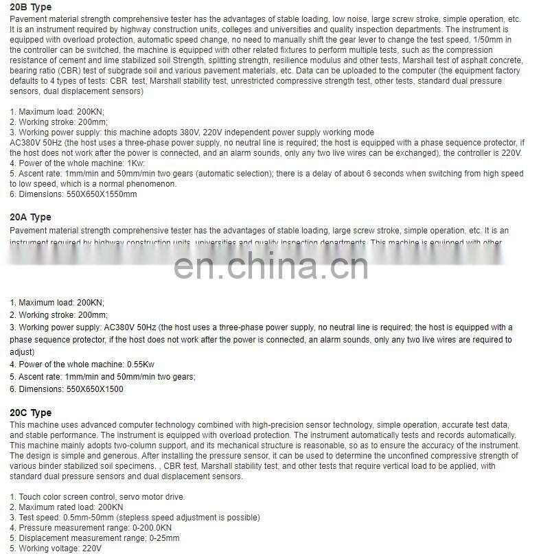 Home > Products > Soil test > Digital Pavement Material Strength Tester CBR Marshal Unrestricted Compressive Strength Test