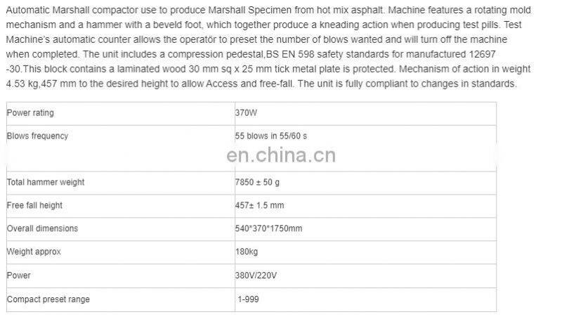 Bitumen Mixtures Marshall Electric Compactor Apparatus Asphalt Compaction Test